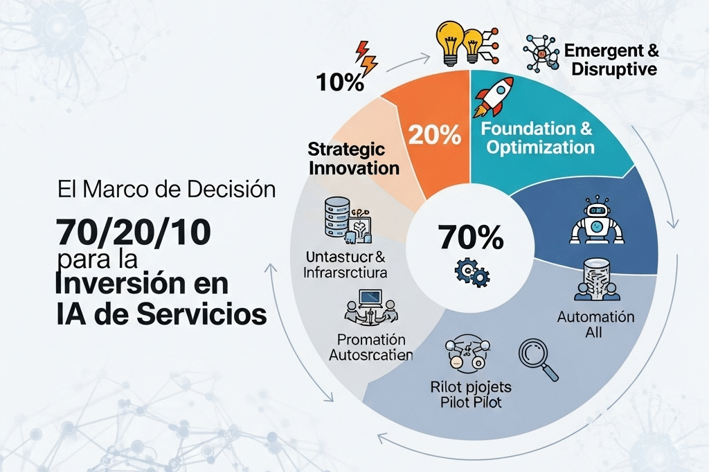 La arquitectura de la IA debe ser federada, integrando insights de la operación (reducción de churn, mejora de SLAs) para alimentar el pipeline de diseño de servicios predictivos. Esto permite a la organización salir del modelo reactivo/transaccional y migrar a uno proactivo/consultivo. Los datasets generados por la automatización deben servir como la materia prima para la identificación de brechas de valor asimétricas que justifican un pricing premium.